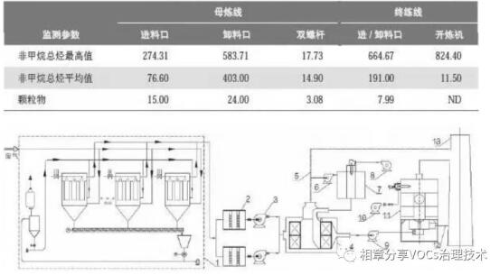 針對(duì)煉膠車間產(chǎn)生的廢氣特點(diǎn),采取“預(yù)處理+濃縮轉(zhuǎn)輪+RTO”的工藝方法進(jìn)行處理,處理后的廢氣排放指標(biāo)遠(yuǎn)遠(yuǎn)低于國家標(biāo)準(zhǔn),可實(shí)現(xiàn)超低排放。